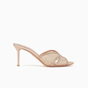 Aquazzura Crystal Lover 75 Pink Mule Sandals