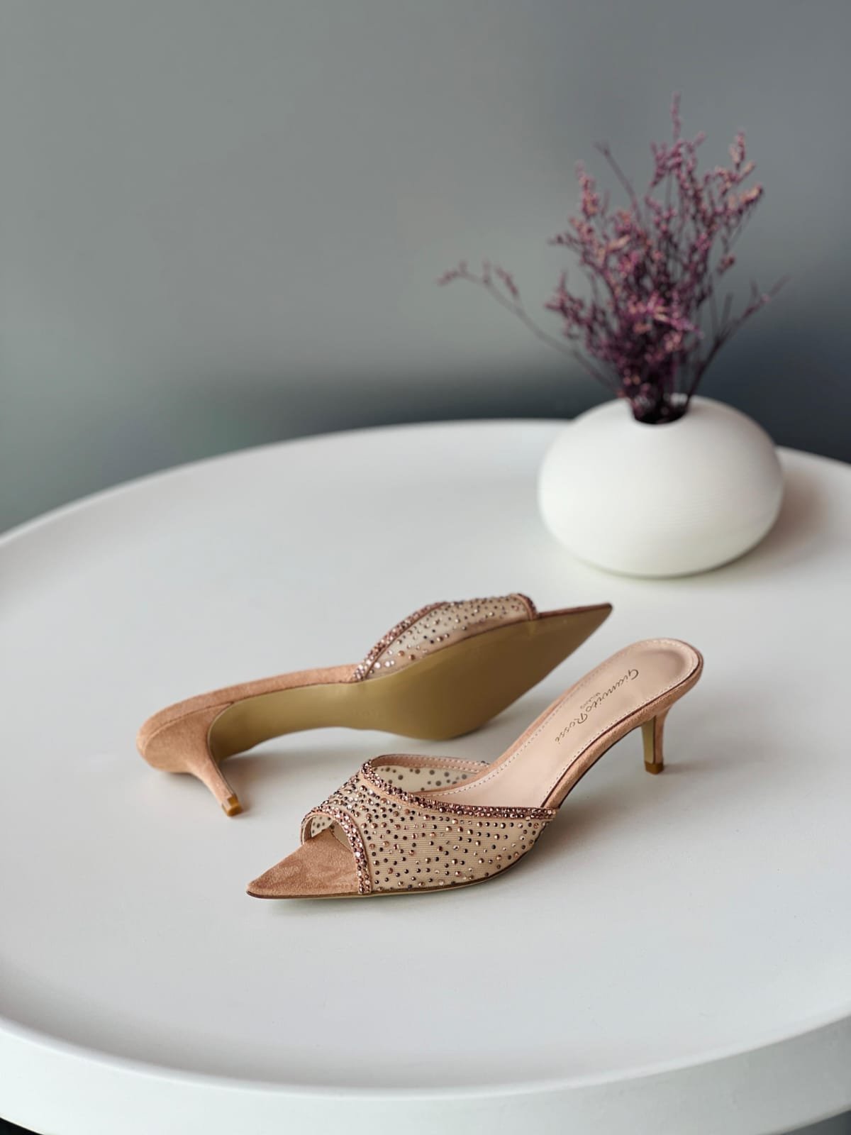 Gianvito Rossi high heels in beige with rhinestones
