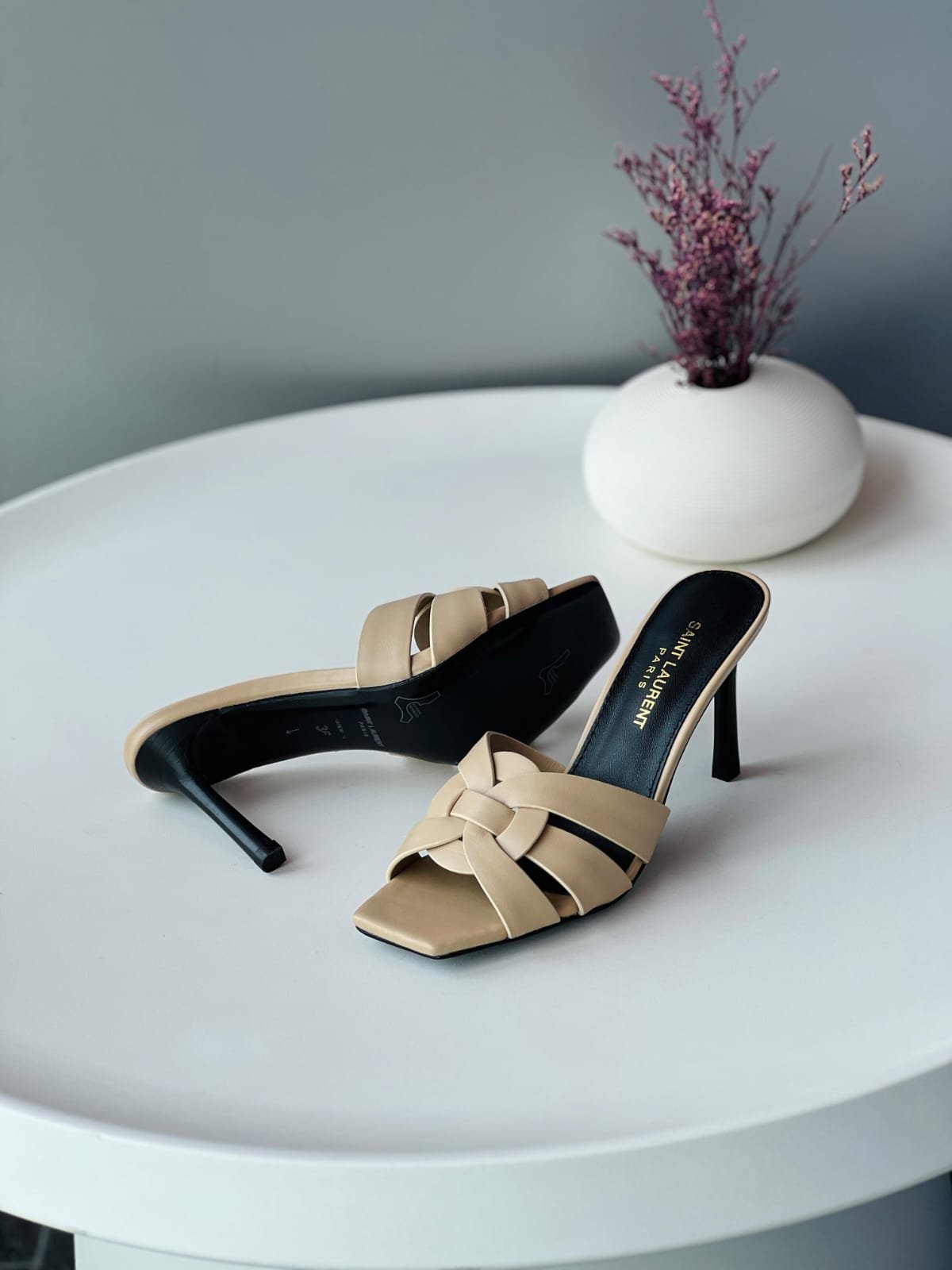 Saint Laurent Beige Leather Tribute Slide Sandals