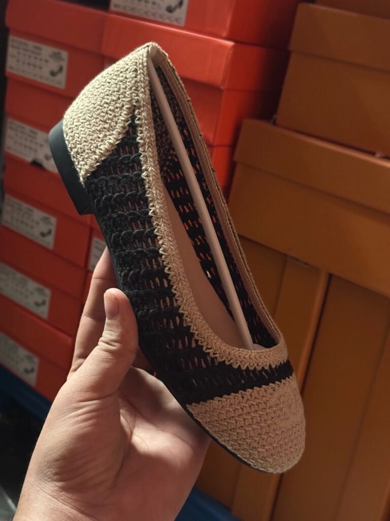 CHANEL 25P CC RAFFIA BALLET SHOES BLACK BEIGE